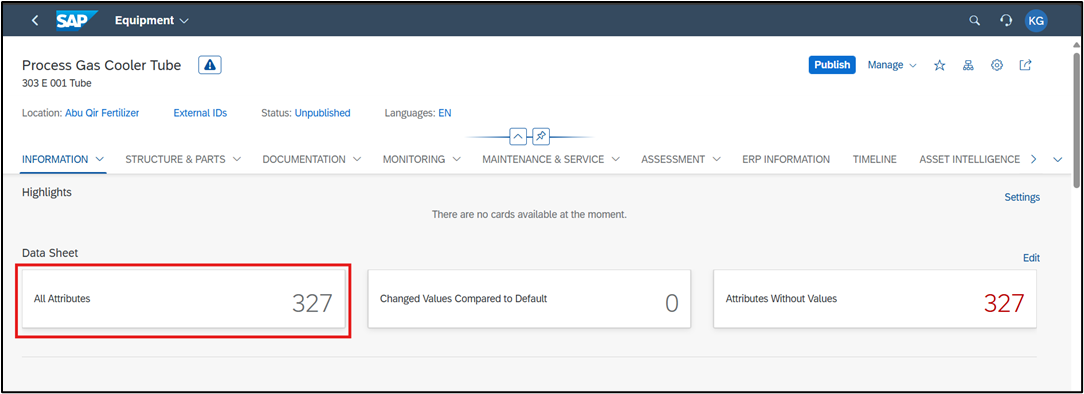 Step 7: Open the equipment datasheet > click on the "All Attributes" card on the left panel.